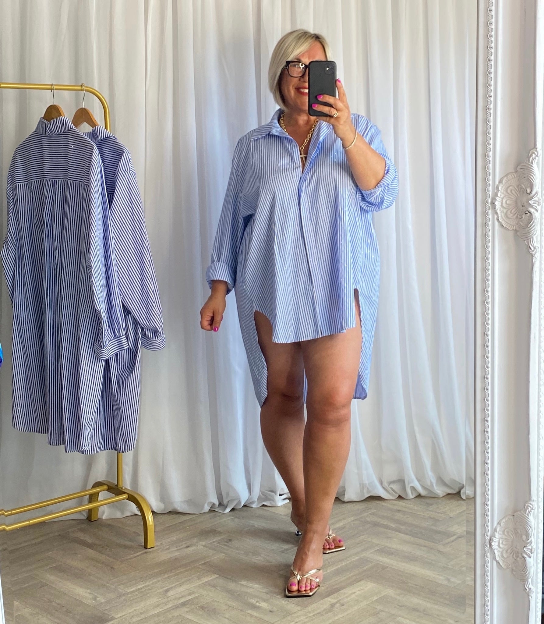 A timeless classic pinstripe detailed with full delicate stud embellishment. This shirt delivers both style and quality Perfect to dress up or down. Pop your favourite bottoms on for coffee with the girls to a night out out, this shirt has you covered